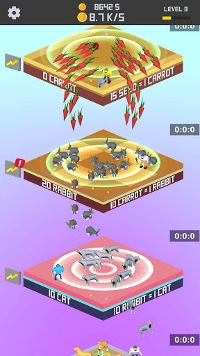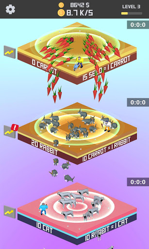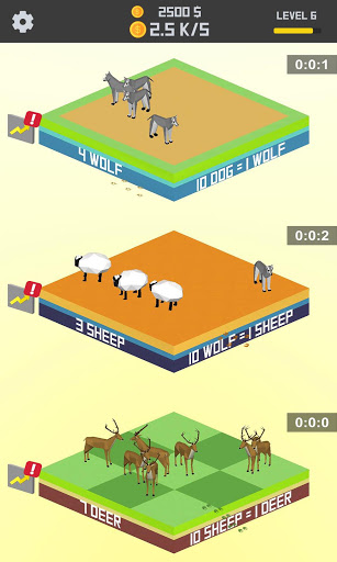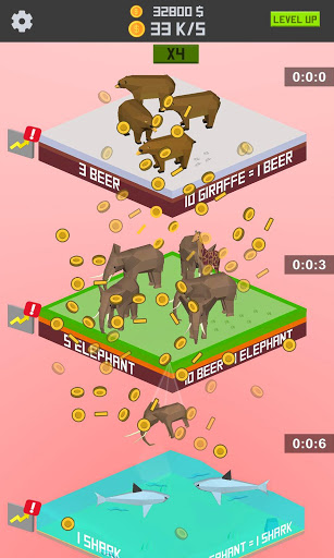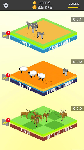 In idle animal merger game, you will merge animals and pets variety of animals, birds, and fish to increase your idle animal collections. Merge animals to unlock new species. Speed up idle clicking and coins collection, unlocking, faster merger, and get animal evolution. As you grow animals you can merge them in special seats and collect hearts animals, discover cuteness pets, and find your favorite animal species. Merge your dogs and other animals, build the ultimate dog racing group and win the merging race! Clicking idle puppies, then upgrade them into new animals and earn lots of money. Tap, collect and grow own zoo animals in idle animal zoo, incremental idle zoo clicker game! Build zoo animals and upgrade them to increase animal’s quantities, and then merge animal with just a tap, to collect custom zoo new idle animal! Manage an animal simulation and upgrade farm ultimate business manager. Idle tapping and merging increase money to expand your animal zoo with safari merger! In this idle animal zoo merger game, your zoo will grow animals and make money to unlock new zoo animals by merging like monkeys, pandas, gorillas, and lions, set business manager to upgrade and new animal collection.