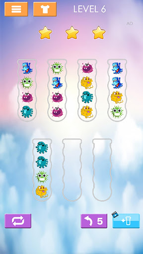• Tap on any tube to move the ball/Shape to another tube.