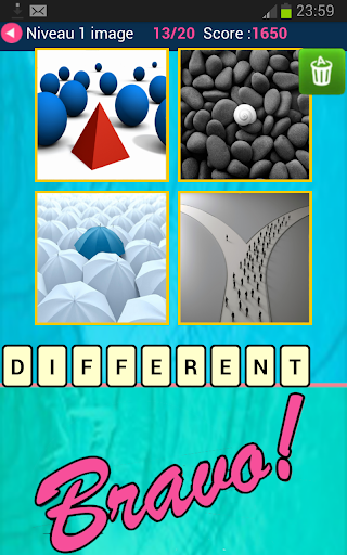 un jeu pour toute la famille, devinez un mot en se basant sur quatre images, deux jokers sont fournis pour vous aider à deviner le mot recherché