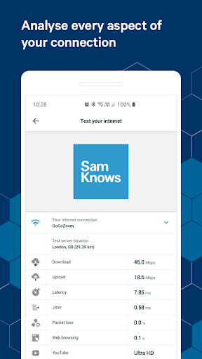 SamKnows Wi-Fi and mobile internet speed and performance measurement application.