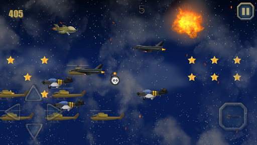 Use up, down, forward and back direction buttons to move the airplane. And use shoot button to shoot the enemies with unlimited rockets.