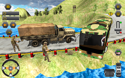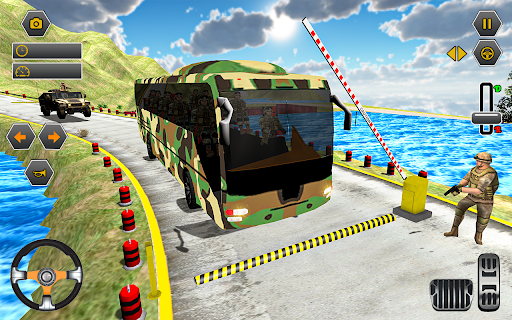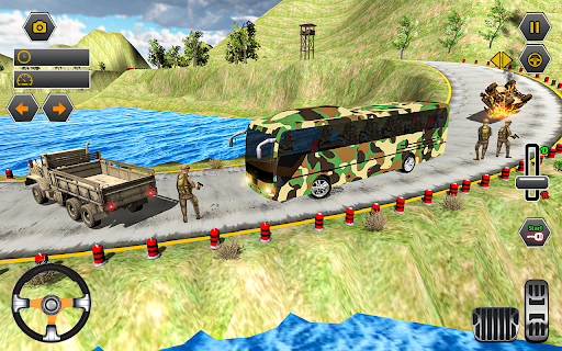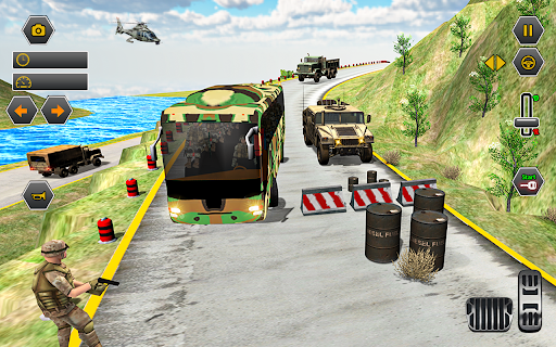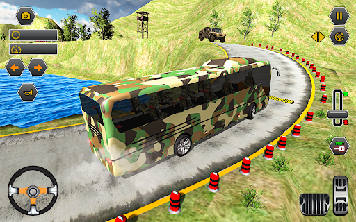 Select army car and drive military vehicle on hill driving dangerous roads. Start with easy levels to get training for army coach bus driver. Army passenger are waiting in city for real bus driver to transport us soldiers in USA military game 2020. War base soldiers will defend your military coach bus army passenger vehicle by air jet robot. Army bus driving games 2020 has realistic army war scenarios where army Bus Mountain driving 4x4 game playing is not easy.