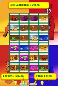 You have to connect two same cards. But not all same letters do match. Only the cards which are in direct neighbourhood or can build a direct line. So it is not as easy to solve in the limited time. Therefore you can ask your jokers to find pairs or refresh the board. To connect two animal letters