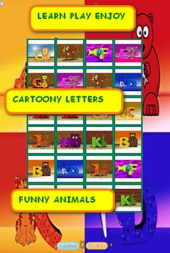 The funny letter game for kids free is exciting and a nice learning and entertainment in connecting two same letters. It is a thrilling play because children and family match all pairs against the time. In the same time the littles learn letters and their meaning with funny animals.