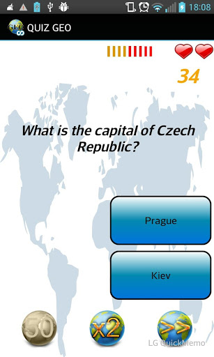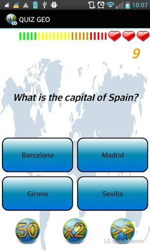 Geography game for children and adults, test your knowledge with this quiz. Compete to be the most knowledgeable of Geography, answer the questions correctly to score points, the faster you answer the more points you make it. In each game you will have three wildcards, the 50%, folding points, and passing the question.