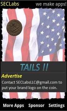 3D animated coin-flip in slow motion. Option to choose U.S. Quarter or Indian Rupee. Customize the app by placing your logo on the coin and put your brand in the screen background. Contact SECLabsLLC@gmail.com