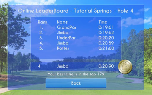 Tilt Golf is a world wide online tournament. Players can compete with each other across the globe to get the top spot on each hole.