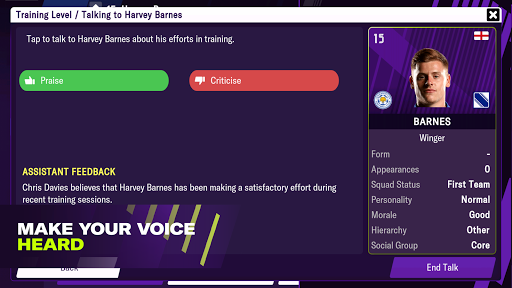 Take advantage of new ways to motivate your players to get an edge in key games and then navigate the media circus on your way to the top of the game. Remember though, everything you say influences dressing room harmony… You’ll also benefit from a revamped UI further highlighting player feedback.