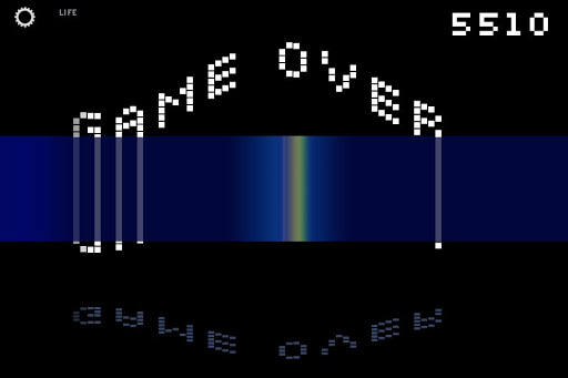 * A fun 1D 'Oldschool-PaddleBall'-like game comes up after a moment as a bonusmode, and you are supposed to keep the white balls bouncing and at the same time avoid read waves. (The red Waves in the bonus mode does not kill you but ends the bonus mode)