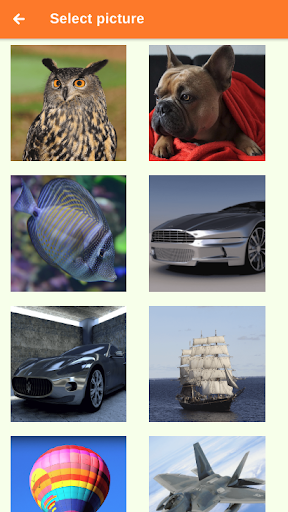 The game includes many colorful pictures on various topics. Select a picture and collect it completely for a minimum number of movements.