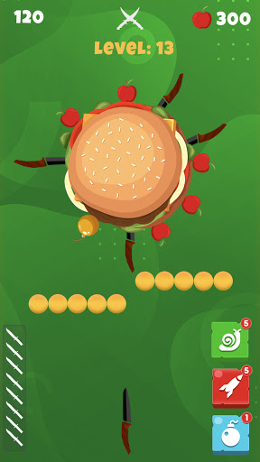 On each level a lot of MOST DIFFICULT HURDLES introduced, throw the knife into the fruit/food logs to slice them to earn apples and unlock special knives, beware to avoid different hurdles like bomb, knife, and just slash the apples otherwise you will be out. MUCH CURIOUS HOW TO TACKLE THESE HURDLES?