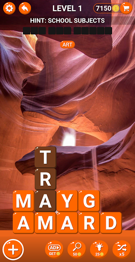 Try to find word in alphabet combination in each level. Prove your knowledge about English words vocabulary! Find as many hidden words as possible to unlock levels and earn extra bonus coins too.