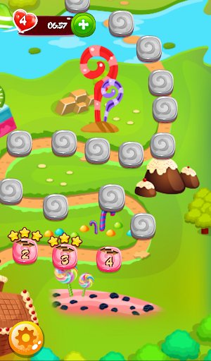 Go on a journey from one candy world to another exploring new candies and sweet characters but remember, paths are also full of evil characters. Save yourself from them and enjoy the delicious candy journey.