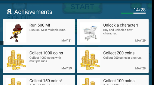 Make new high scores by covering farther distances and collecting more coins!