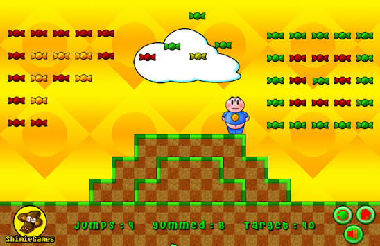 In every level you have a target number of candies to eat, touch and aim to jump between obstacles, platforms and evil vegetables! Move between the 3 different lands of Candy World and find the door that leads back to home.