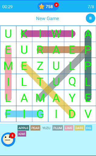 search words in word grid and increase your concentration along with your word power, you can customise your grid dimension to increase the difficulty level.you can slecet type of category for words like: fruite animal country and many more