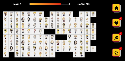 - When there are no identical pairs of characters on the screen, the game will automatically change positions to support you, or you can use suggest to find the pair. Each level with 3 turns of help.