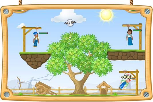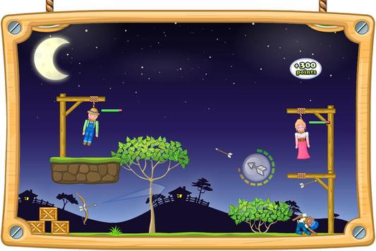 Save the innocent people being hung by shooting the nooses with your bow and arrow. Be careful not to miss! In the lives of the innocent people before the end of the rope shoot broken, save them!