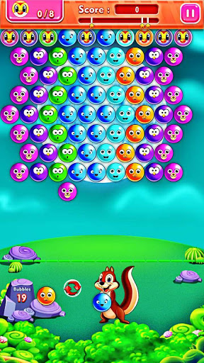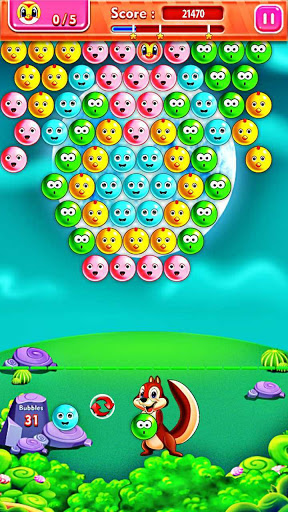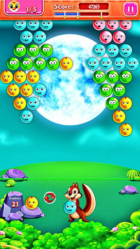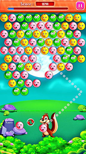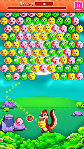Get a high score by surviving as long as you can (endless if possible). Bubble move down continuously from slow to faster and then crazy faster. Some time new bubbles is drop down, if you miss hit it. New egg is generated after that. There are a lot of bonus types (multiple 2,3,4 times) help you to get best score. You can get bonus score too when hit vibrating bubbles .