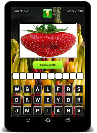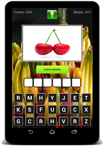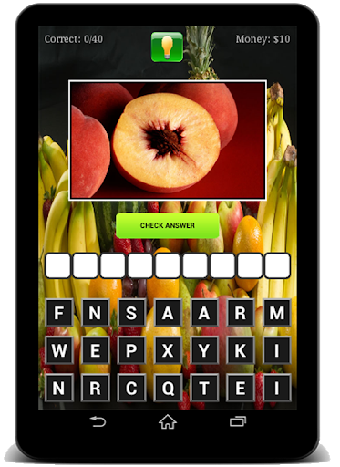 Fruits and Vegetables Quiz is a new educational game for your kids ,you can test your knowledge about fruits and vegetables ,and show us your skills .in this game there are a lot of picture you should to guess the name of each fruit or vegetable in the images to move to the next level !