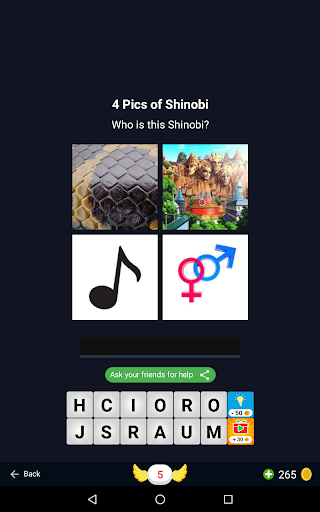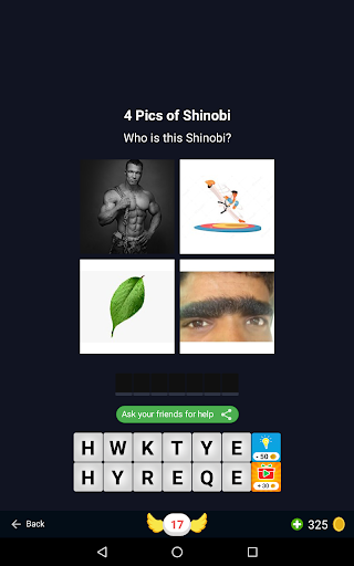There are 4 pictures in the game, one picture is one clue for solving the Shinobi. The game "4 pics shinobi" is already played by all the fans.
