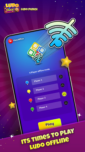 ☞ Play offline - No internet connection required. You can play Ludo Punch Game without internet. Select Play Offline mode and play individuals or as teams of two players. You can choose color & names for each player. Just Pass and Play Ludo game.