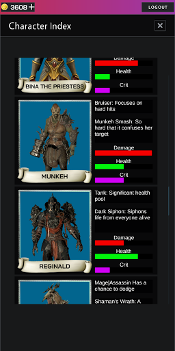 * Purchase new character with in-game currency