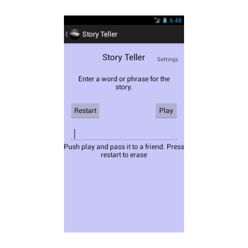 Story Teller allows you and your friends to be in charge of the story. With Story Teller simply type or speak a small portion of your story and push play then pass it to a friend. The story will be read back to you and your friend for hours of hilarious fun.