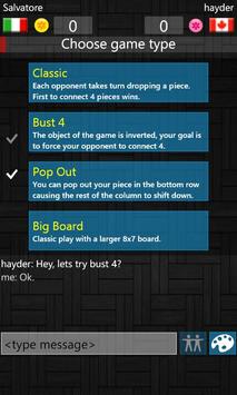 * Bust 4: The object of the game is inverted, your goal is to force your opponent to connect 4.