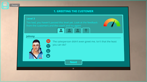 In the Customer Service Game you will learn how to serve and communicate with customers in the best way possible. In a virtual 3D store, you will practise with approaching customers, greeting, offering assistance, discovering needs, showing interest and making personal conversations.
