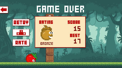 It is a simple sidescroller game and you need to bounce the tomato character off the floor to jump over the moving wooden crates.