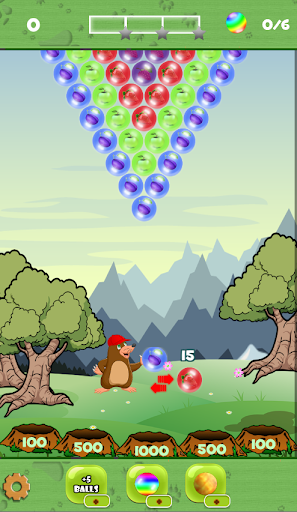 Forest Mole Bubble Shooter the most addictive game and it is FREE. To pass a level you will need to free six rainbow balls from the top row, but to get 3 stars this won’t be enough. You will have to demonstrate high concentration, observation and logical thinking to achieve the best Result. Do you have what it takes? What about your friends?