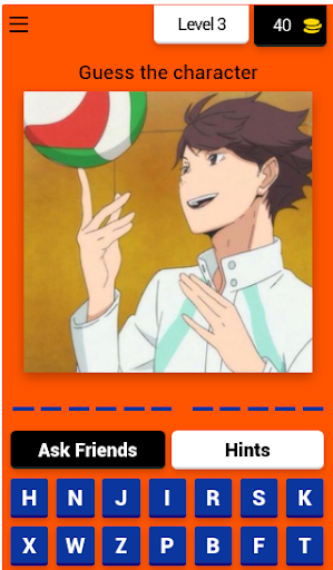 If your memory is as sharp as you think, you will definitely love this trivia game – Guess The Haikyuu! Characters. Guess the names of hundreds of popular characters from this famous anime series. Guess The Haikyuu! Characters have more than 50 levels for you to test your knowledge of these characters!