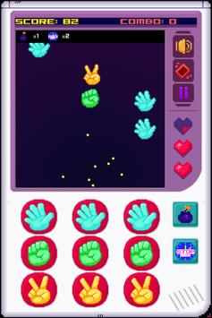 1.How to Play: The rule is very simple , rock can eliminate scissors, scissors can eliminate paper, paper can eliminate rock. You just need to click the right button to eliminate the patterns which fall from upside. There're two props help you make high scores : the bomb and the stop time. Number of consecutive hits, the more it will reward appropriate props and life. Play with your friends and see who have the most score and combo.
