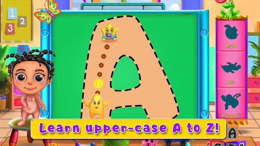 ✔️ Tracing Uppercase letters A to Z - It is intuitive, and it's leading your child to write the letter by hand gesture shown through the animation. When the letter is traced fully, that will start the animation of an object whose name starts with that letter!