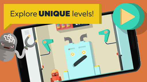 We are helping the brain-o-bot pass successive levels full of twisted brain teasers that bring us closer to the final that will be decisive for the fate of the whole planet.