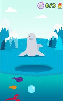 물방울 안에 물고기가 들어가있을 때 터치하여 물개에게 먹이를 주세요! ( 순발력 향상 및 인지능력 )
