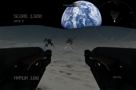 You must get rid of the alien insect nest on the moon to save the human race. You are equipped with unlimited ammo of machine gun. Kill them all or they'll take over the earth.