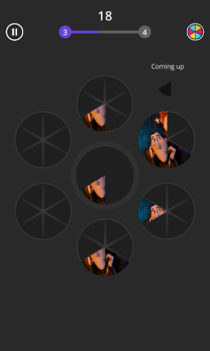 Tap in one of the inner circles to place the slice. To complete a circle just tap the circle with match image given in the clue.