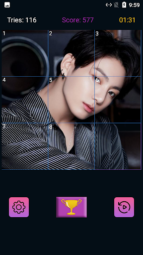 This game is made for BTS Army ! Our Slide Puzzle game includes a lot of photos of different difficulty that you could chose.