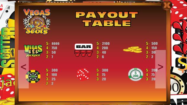 Score five Vegas Jackpot Symbols and win the giant jackpot pool! Refer to the Payout Table for payoff amounts.