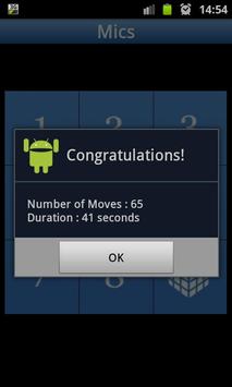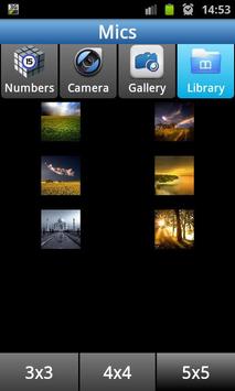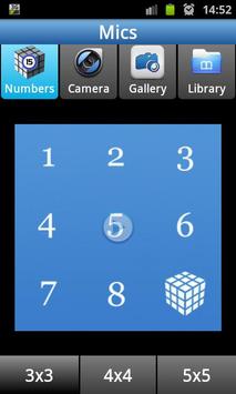 Mics is a remake puzzle Android/iOS game on the famous 15 puzzle. User can choose different puzzle sizes 3x3, 4x4, 5x5 , and modes : with numbers, from camera (the user takes a photo and the app generates the puzzle), from image gallery (the user picks a photo from the device’s gallery) or from images bundled in the app. After the user chooses the size and mode of the puzzle he start playing. The puzzle is a custom puzzle which re-sizes according to the device screen dimensions and orientation. To solve the puzzle the user needs to click on a piece from the same row or column as the empty spot. After the puzzle is solved a dialog will appear which displays game statistics : number of moves and duration.No ads or commercial notifications at all.