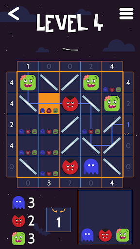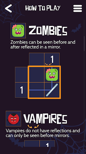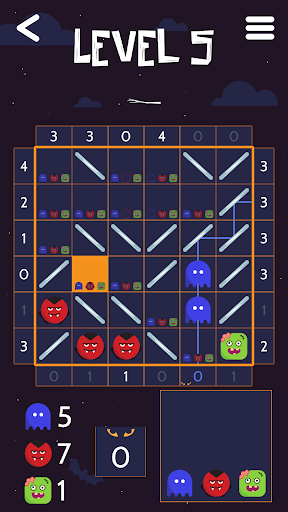A Halloween themed puzzle game! Find monsters on a grid using clues, mirrors, and logic. Discover all the monsters to win!