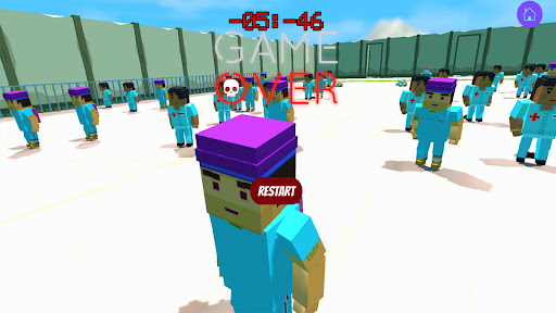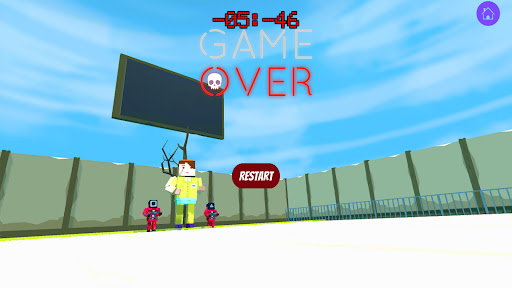 Play in the Red light, Green Light Survival Challenge called Red Light Green Light! to cross the "Red light" and the "Green Light" finish line without getting caught by the doll in given time.
