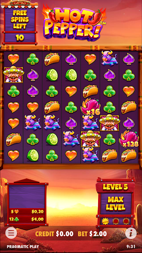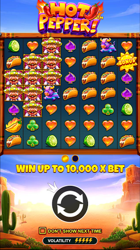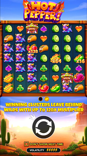 Spicy cluster wins await in Hot Pepper™. Played across a 7×7 set of reels, Hot Pepper™ is filled with chili symbols that must have five or more matching adjacent symbols to award a win. These are then removed from play, triggering a tumble feature where new symbols replace winning ones and allow for additional wins to be made. Every cluster win leaves behind a random wild, with a multiplier in one of the tumbling positions. Furthermore, a level-up feature can increase the multiplier that can be attached to these wilds, further increasing the thrills that this slot has to offer. In the bonus round, players are boosted to the maximum level of five out of five, allowing for bigger wins to take place. There is also a wild creation feature that can award wilds during play, and these are key to unlocking the title’s fiery max win worth 10,000x!