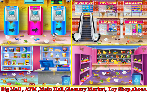 This is a excellent collection of cleanup games with plenty of public places levels like airport, hospital, malls, schools, park, hotel, house which include many principal things to teach kids how to make their home and city neat & clean. Let's play the most impressive educational cleaning kids game where all age people can learn something new every time about housekeeping skills. This Game Include Many public places of your city as described below.