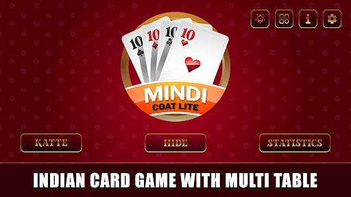 Mindi Coat Lite is one of the most popular card games and now it's ready for android mobile phones and tablets with its high-quality features. You can now download the best Mindi Coat Lite for free. The best thing is it doesn't need to connect to the Internet, you can play it anytime, anywhere. When the game opens, there are three boxes Katte, Hide, and Statistics. Katte and Hide box are the two modes of the game, and Statistics is the information of your playing achievements.