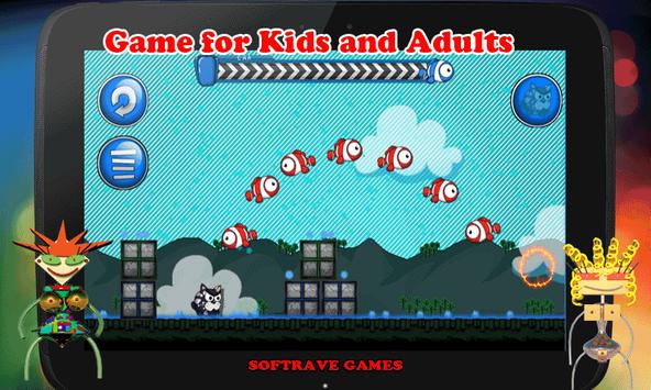 Each cute kitten has its own specialty. Murzik is the only specialist that can effectively collect food, Kuzya can use the levers that turn off the kitty poison, and Vasya, yeah, Vasya can teleport! Teleporting cats! That's awesome! Stop Sasha the Evil from starving all the hungry kittens by downloading today! You won't be disappointed! This amazing game was professionally designed with fun gaming and frolicking kittens in mind. Watch less cute kitten and cat videos, play this adorable game and show Sasha who the real boss is!