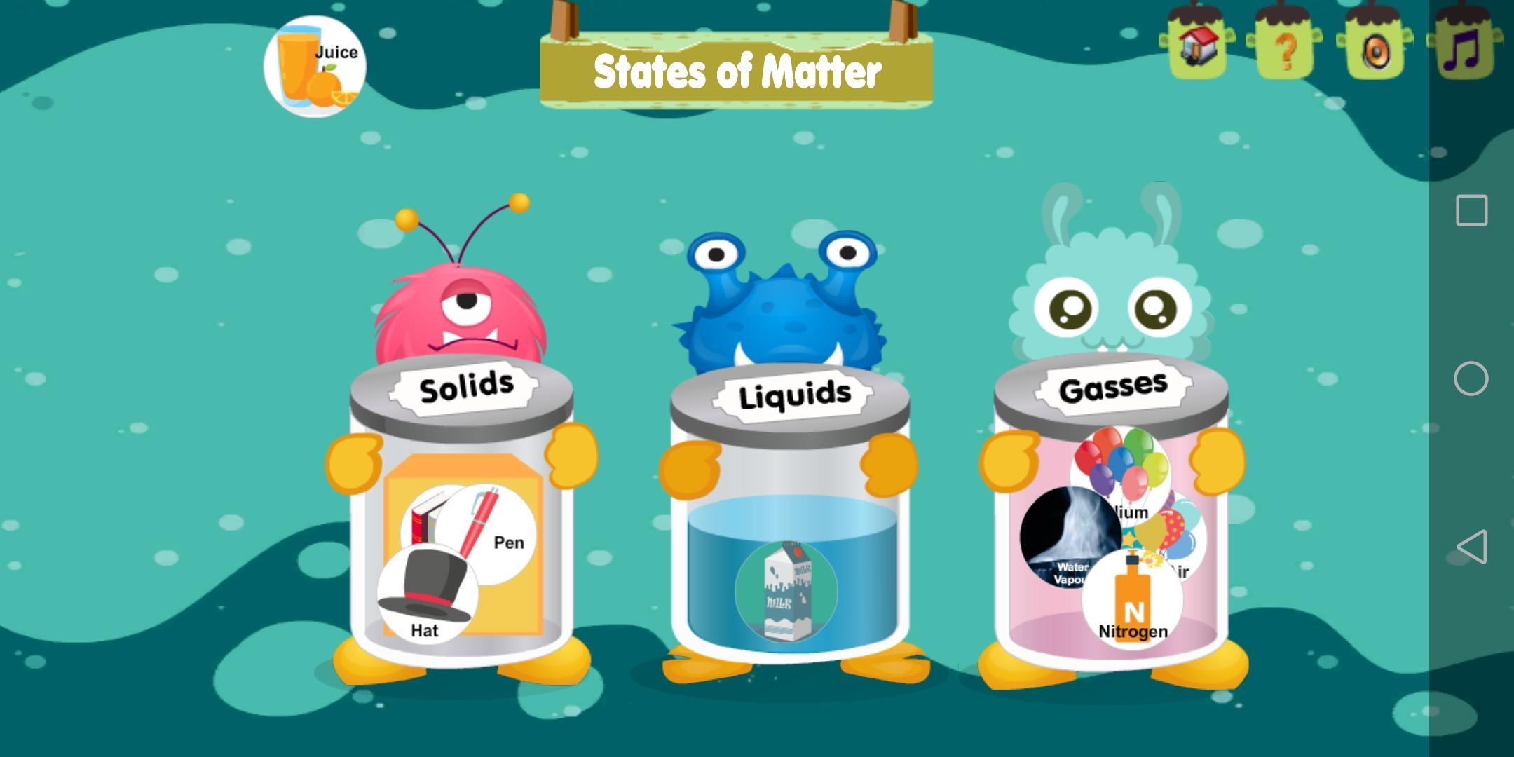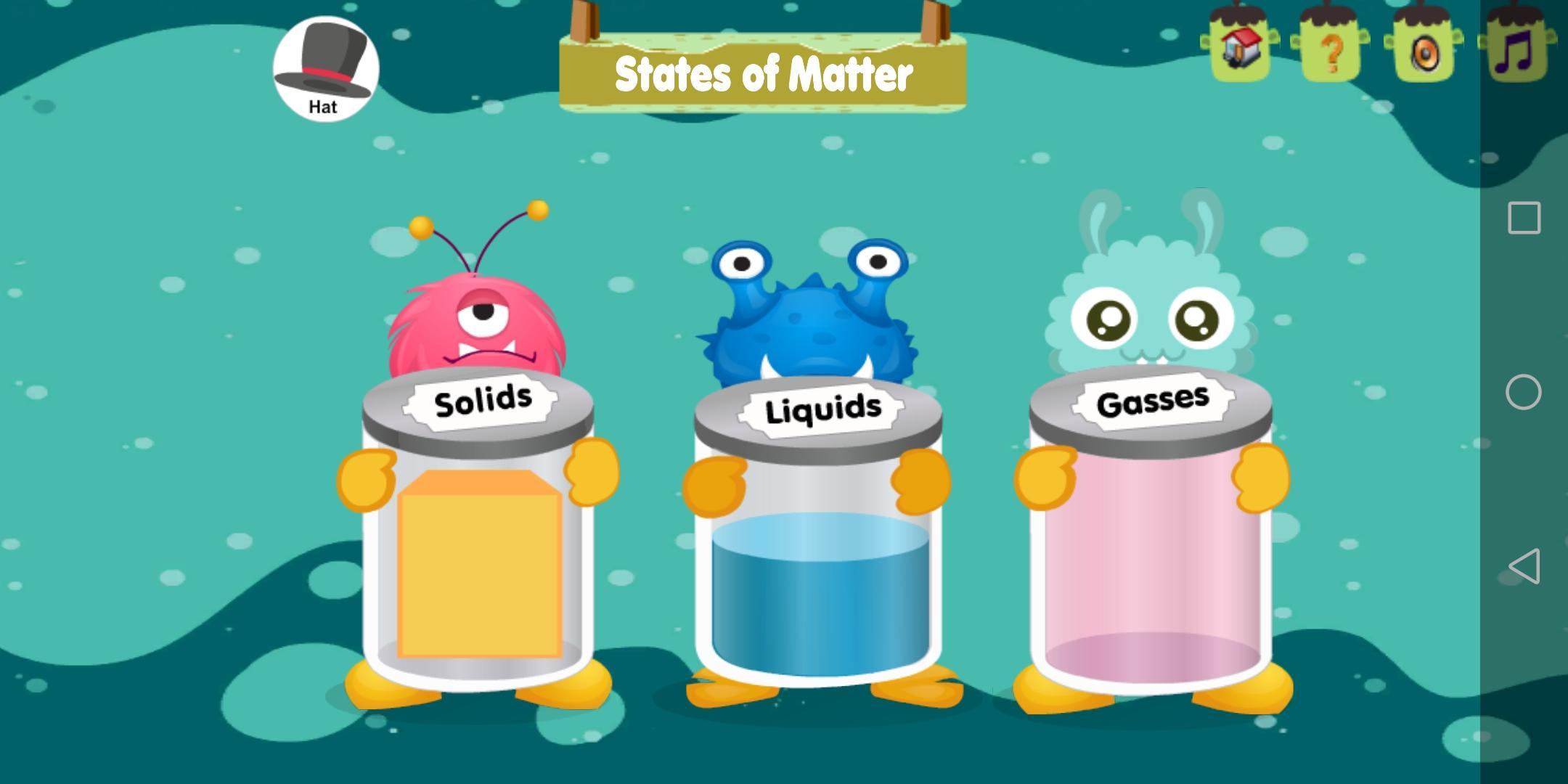 States of Matter game is a study of solids, liquids and gasses classification