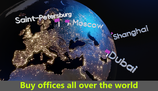 -- Offices. Offices for employees in different cities of the world are also available to you in the game. Each city gives its own bonuses. Upgrade your office for 300 points on the improvements page to increase the number of available designers, engineers and other employees.